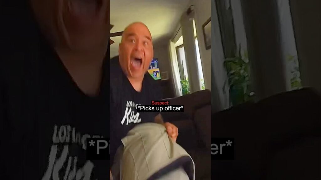 The incident begins inside a home where deputies are attempting to speak with a man who is already visibly agitated. The first frames show an officer cautioning him, saying, “You’re not pushing me,” as the suspect steps in close and ignores commands. Within seconds, the situation escalates dramatically. The man lunges forward, grabbing the deputy and physically lifting him off the ground. This sudden assault marks a major turning point in the encounter, turning a verbal dispute into a violent struggle.